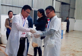 根據(jù)轄區(qū)實際情況,該局采用分組分片區(qū)的形式對轄區(qū)內(nèi)的農(nóng)貿(mào)市場進行現(xiàn)場檢查,對牛百葉、鳳爪、海蜇等水發(fā)產(chǎn)品和豬、牛、羊肉現(xiàn)場使用快檢方法進行鑒別,如經(jīng)現(xiàn)場快檢呈陽性的,按照監(jiān)督抽樣規(guī)定的程序、步驟和要求進行抽樣,抽樣完后將樣品送往海南省食檢中心檢驗檢測。經(jīng)檢測對確定含甲醛、雙氧水或為注水肉的,將立即移交公安部門追究添加非法物質(zhì)當事人的刑事責任。對注水肉的,要追溯屠宰來源,將屠宰場的違法行為提供給農(nóng)業(yè)部門。